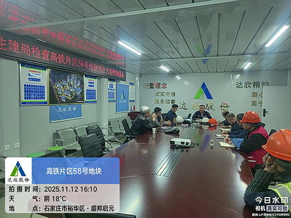11月12日,石家莊市住房和城鄉建設局安全監督站領導與機械設備專家組成的檢查組,在區住建局安監站領導陪同下,對第四工程公司承建的高鐵片區58號地塊項目開展大型機械設備安全專項檢查。