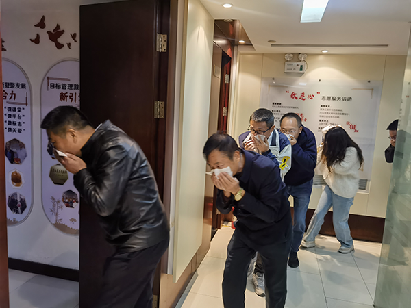 本次演練由滅火行動組(質量安全部門)、通信聯絡組(辦公室)、疏散引導組(核算部門)、安全防護救護組(財務部門)組成,陳元國為現場執行指揮。他強調,一是牢記疏散路線,清楚安全出口和通道位置,不乘電梯、不貪戀財物;二是熟練使用消防器材,掌握滅火器和消防栓操作;三是強化應急意識,發現火情及時報警并報告物業安保,做到“早發現、早報警、早處置”。在大家配合下,演練圓滿完成。